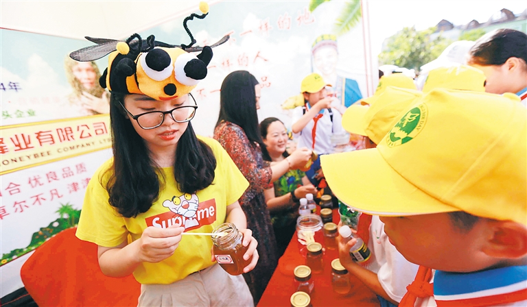 据了解,本届活动以“践行‘两山’理论,放飞蜂业梦想”为主题,倡导“关爱蜜蜂、保护地球、保护人类健康”的理念。5月20日至5月23日,全国各地的蜂业专家学者来到琼中,就琼中蜂业发展进行深入讨论研究。琼中还举行了蜂蜜产业精准扶贫“一对一”活动,以及普及蜂蜜文化知识、展示智慧蜂场等多项独具琼中特色、传播蜂蜜文化的精彩活动。