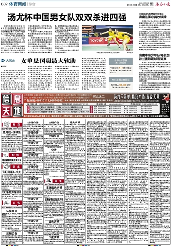 海南日报 体育新闻综合 015 2018-05-251 2018年05月25日 星期五