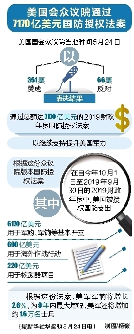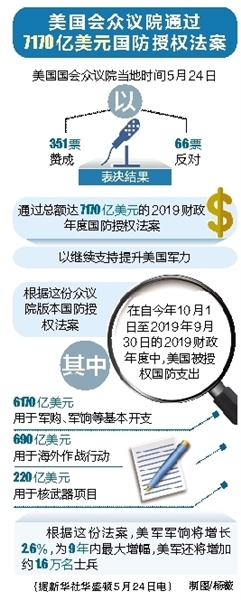 在自今年10月1日至2019年9月30日的2019财政年度中,美国被授权国防支出