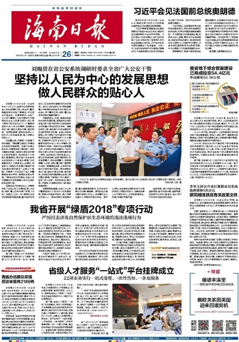 海南日报 头版 001 2018-05-261 2018年05月26日 星期六