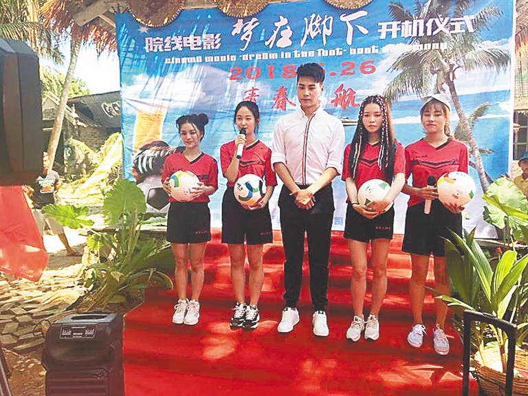 该片由海南本土影视出品人张凯平和制片人王大海策划拍摄,著名导演子宸也为该片筹备了3年时间。子宸在开机仪式上说,他几年前就从北京来海南旅居,这部电影把他对海南的热爱之情也融了进去。为让片中人物在表演上可圈可点,他特地从北京请来了17岁美少女古曈之出演片中女主角珊瑚,请来北京小帅哥李乐天出演片中男主角张海,请到北京女孩鹿露、余茜原子、刘美涵和海南黎族女孩黄月娟、周冰洁在片中扮演五朵“小花”。剧组还邀请了海南本土20多位有足球学习经历的女孩出演片中的女子沙足队球员。子宸说,古曈之已有“小周冬雨”之称,外形和表演风格与周冬雨非常接近。李乐天已是一位拥有不少粉丝的小有名气的影视新星,他一来到海南就和剧组所有演员一起,接受了一个多月的足球强化训练,现在主演们都已能完成很多高难度足球动作。古曈之和李乐天两位主演在开机仪式上表示,片中这群海南女孩的故事深深打动了他们,他们将以海南女孩自强不息的拼搏精神激励自己,把《梦在脚下》拍成精品。