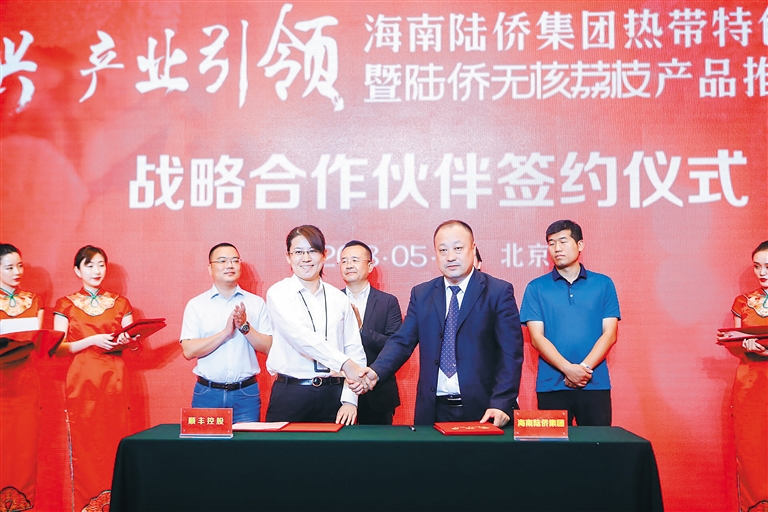 推介会上,海南陆侨集团还分别与杭州兴邦果业有限公司、顺丰控股(集团)股份有限公司、融创物业服务集团有限公司、银果资本管理(北京)有限公司、德商汇投资控股集团有限公司举行了战略合作签约仪式。