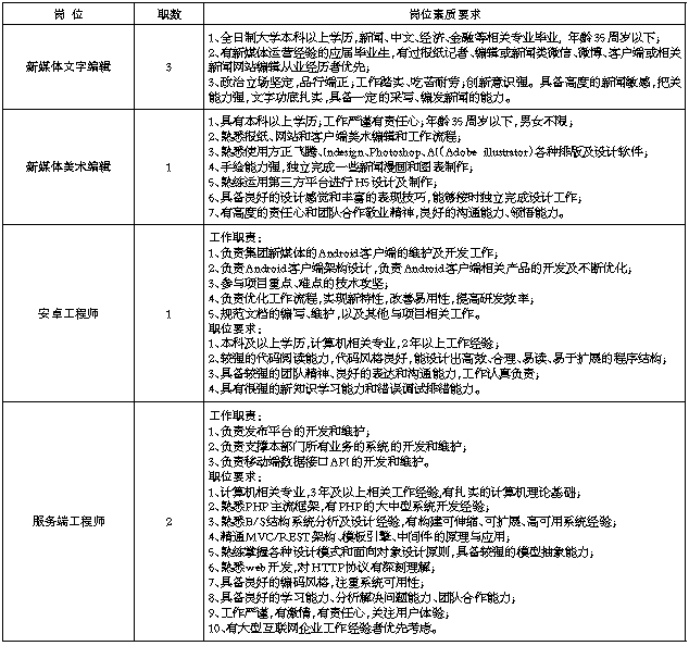 一、招聘岗位及要求