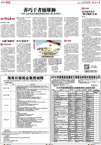 海南日报 评论 004 2018-05-281 2018年05月28日 星期一