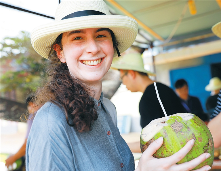 “我喜欢热带地区,有点热,但是我喜欢这种感觉,非常美非常自然,我应该多来这种地方才有灵感创作。”在美巢古村落,意大利诗人雪莲沉醉于村里的古墓、古驿道、古井、古树、古诗,五个“古”元素让她体会了临高的古风之美,“这一次采风,让我们真正感受到了临高的美。”