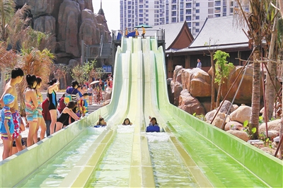 三亚宋城浪浪浪水公园,园区内有浪迹天涯、穿越时空、三亚号角、山涧穿越、鸳鸯滑道、彩虹滑道、丛林漂流、欢乐水寨、弄潮儿等数十项大型水上游乐设备。置身其中,一会儿水波涟漪,一会儿波浪汹涌,接踵而来的浪花拍击,清凉和舒适感汹涌袭来,如同感受晶碧色的大海和洁白的沙滩,别有一番乐趣。