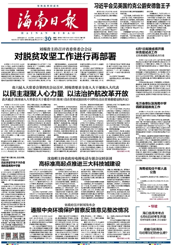 海南日报 头版 001 2018-05-301 2018年05月30日 星期三