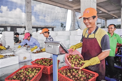 今年琼山区荔枝丰产,但存在收购价低问题。琼山区通过大力吸引荔枝收购商到三门坡镇收购,组织近100名有打包技能的志愿者协助包装荔枝等,确保荔枝销售市场平稳有序。本报记者 张茂 通讯员 龙泉 摄