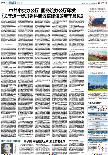 中共中央办公厅 国务院办公厅印发 《关于进一步加强科研诚信建设的若干意见》