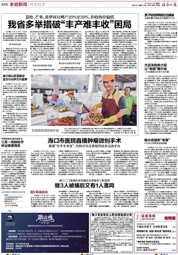 海南日报 本省新闻民生/社会 005 2018-05-311 2018年05月31日 星期四