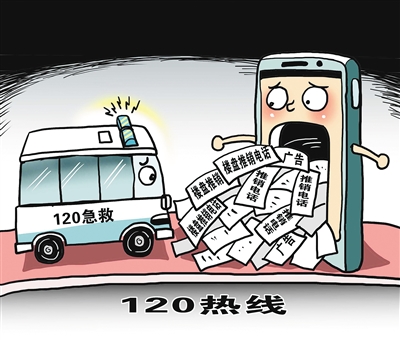 推销电话扰民现象并不鲜见,甚至可以说已经给社会造成严重影响。但骚扰电话占用120生命通道,严重干扰急救工作,已经给人民群众生命安全造成严重威胁,事件性质恶劣。政府部门及时出手惩治,无不让群众拍手叫好。但我们也要看到,被电话骚扰的远远不止急救中心。只有真正阻断推销电话的干扰之路,才能还人民群众一个清静的社会。这正是: