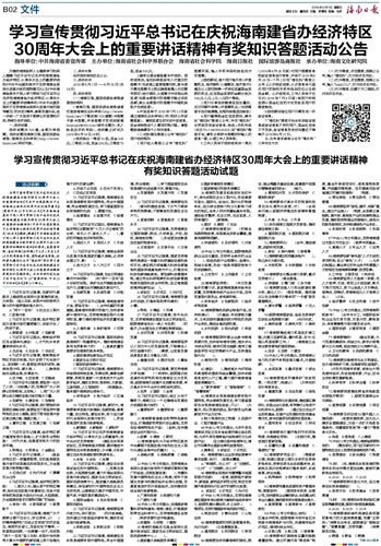 学习宣传贯彻习近平总书记在庆祝海南建省办经济特区30周年大会上的重要讲话精神有奖知识答题活动公告