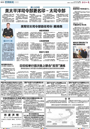 海南日报 世界新闻综合 017 2018-06-011 2018年06月01日 星期五