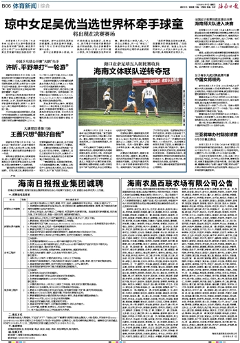 海南日报 体育新闻综合 018 2018-06-011 2018年06月01日 星期五