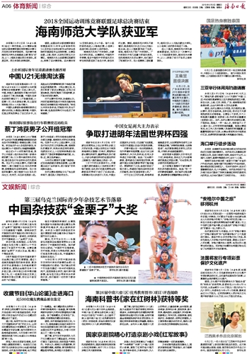 海南日报 体育新闻 文娱新闻 006 2018-06-031 2018年06月03日 星期日