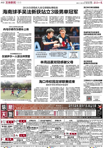 海南日报 文体新闻综合 012 2018-06-041 2018年06月04日 星期一