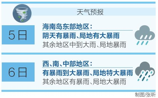 据监测,南海热带低压中心今天(4日)17时位于三沙市(西沙永兴岛)西偏南方大约230公里的南海中部海面上,中心附近最大风力7级(15米/秒),中心最低气压为1002百帕。预计该低压中心将以每小时10公里左右的速度向偏北方向移动,强度缓慢加强,将于4日夜间至5日白天发展为台风(热带风暴级),6日白天登陆或擦过海南岛东部(热带风暴级,20-23米/秒,8-9级),然后向广东西部一带沿海靠近。受其影响,5日-9日我省将出现一次强风雨过程。