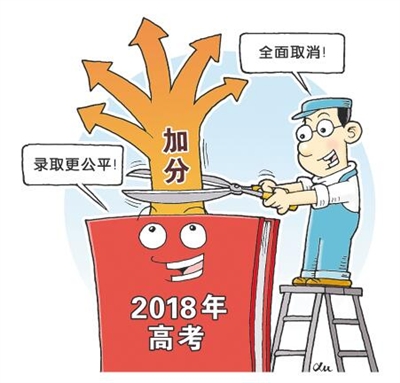 2014年,教育部等多部委联合印发《关于进一步减少和规范高考加分项目和分值的意见》的要求。经过3年的实践,2018年高考考生将成为全面取消全国性高考鼓励性加分项目的首批考生。