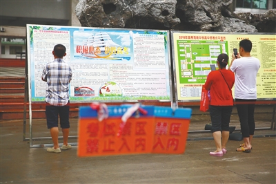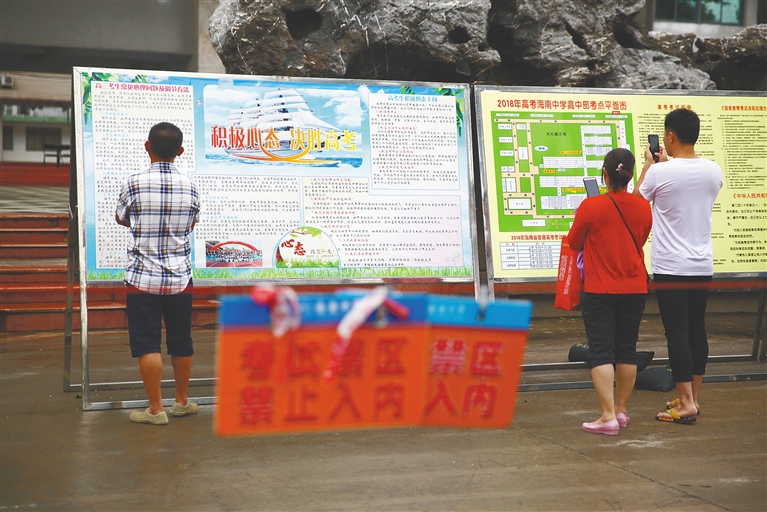 高考前夕,海口各高考考点面向考生开放。图为6月6日,在海南中学高中部考点,考生在家长的陪伴下提前“踩点”看考场。 本报记者 张茂 摄