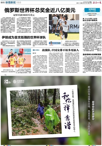 海南日报 体育新闻综合 013 2018-06-071 2018年06月07日 星期四