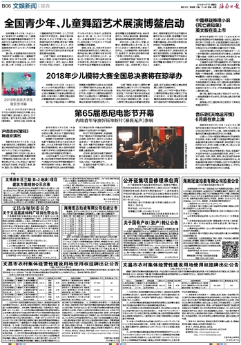 海南日报 文娱新闻综合 014 2018-06-071 2018年06月07日 星期四
