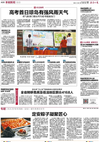 海南日报 本省新闻综合 008 2018-06-071 2018年06月07日 星期四