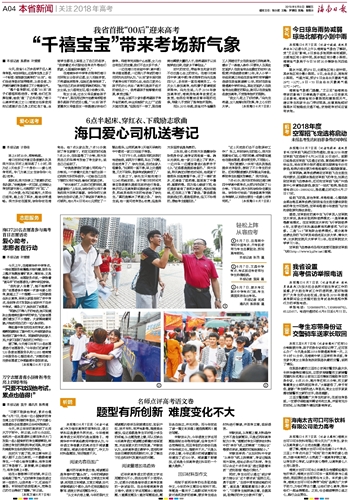 海南日报 关注2018年高考 004 2018-06-081 2018年06月08日 星期五
