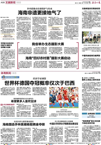 海南日报 文娱新闻 体育新闻 008 2018-06-091 2018年06月09日 星期六
