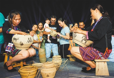 欢快的文昌盅盘舞,美味的陵水酸粉,精致的黎族藤编制品……6月9日晚,2018年“文化和自然遗产日”海南非物质文化遗产宣传展示主场活动在省文体公园广场正式启动,集中展示海南丰富的非遗代表性项目,让非遗走进海南人的生活,进一步传播海南特色文化。
