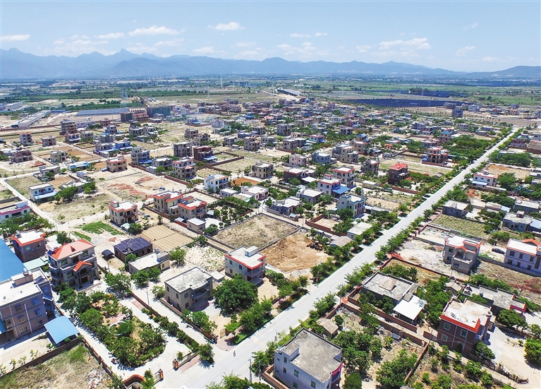 旭日初升,露水晶莹剔透,6月2日上午,海南日报记者来到乐东黎族自治县佛罗镇的新丹村,村前是郁郁葱葱的稻田,阡陌交错,大道成荫,一幅怡然乐居的乡土画卷。