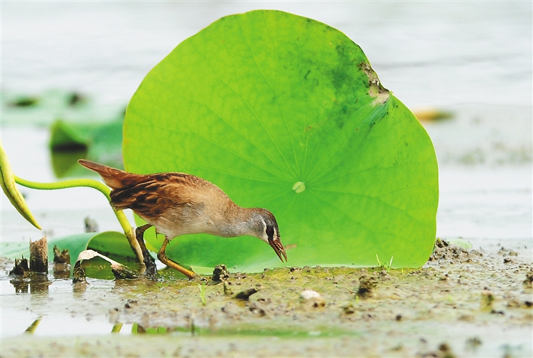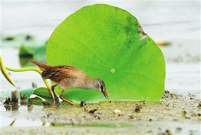 在王景和的眼中,白眉田鸡“动作不紧不慢,不慌不忙,不像有些鸟那样特别警惕”,“憨态可掬”是他对它的印象。