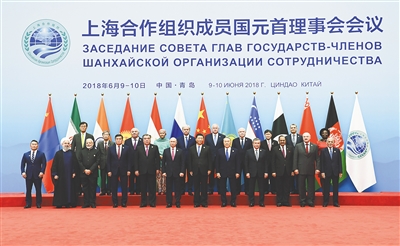 6月的青岛,风景如画。国际会议中心外,碧海蓝天,与会各国国旗、上海合作组织会旗和与会国际组织旗帜迎风飘扬。上午11时许,会议正式开始。