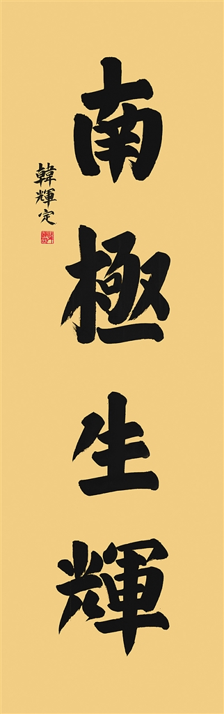 作为一名书法家,韩辉定16年来精心研习篆书、楷书,在长期大量创作中形成其个人风格,他于2015、2017年先后出版了《琼台墨迹》《琼台翰墨》书法作品集 ;与此同时,作为琼台师范学院中文系的专职书法教师,韩辉定潜心施教,用毛笔书写桃李芬芳,用汉字的横、竖、撇、捺唤醒年轻一代对中国优秀传统文化的认知与敬畏。