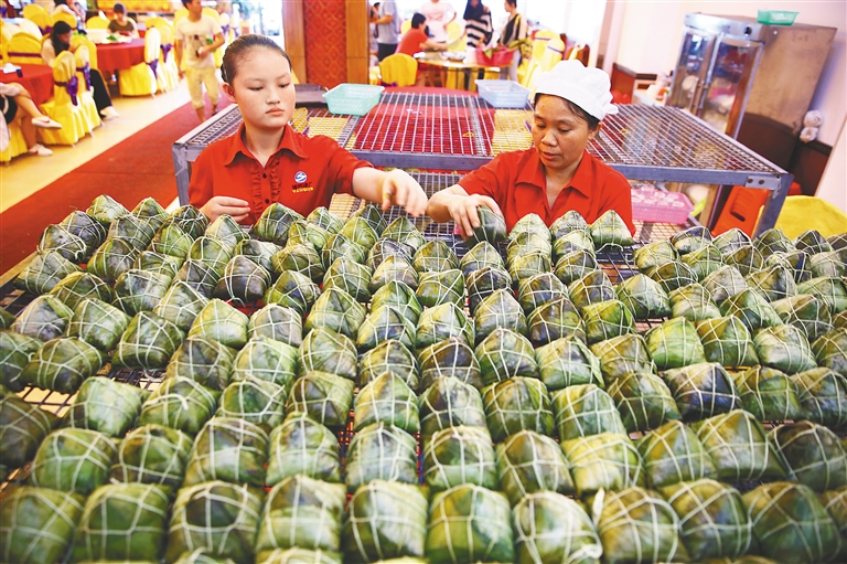 李爱柳忙碌的场景,正是近来定安粽子生产企业的缩影。定安粽子供不应求,不仅走向省内各酒店、超市,还通过电商销往全国各大城市。