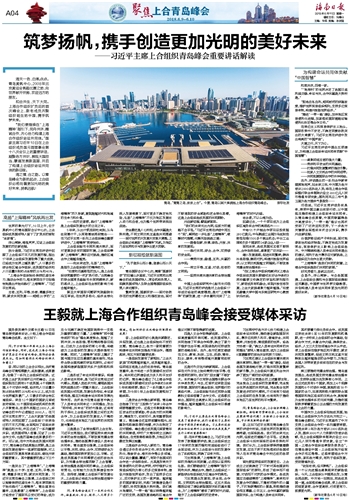 | 海南日报 聚焦上合青岛峰会 004 2018-06-111 2018年06月11日 星期一 |