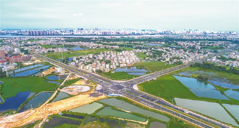 6月10日,高空俯瞰海口江东新区,连接铺前大桥和琼山大道的路网建设正在稳步推进。据了解,在推进重大基础设施方面,按照整体统筹、分步实施的计划,我省邀请国内外知名专家及中规院、同济大学、上海市政院等机构启动江东新区路网总体规划和南渡江跨江通道等项目规划建设。本报记者 张茂 摄