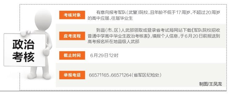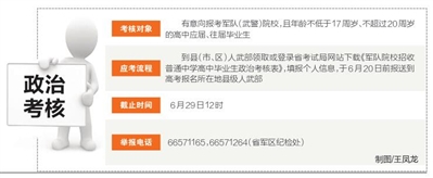 省军区招生办相关负责人表示,对于在政治考核工作中发生的徇私舞弊、收受钱物、以权谋私等违反纪律行为,欢迎广大考生和家长及时向省军区招生办举报。