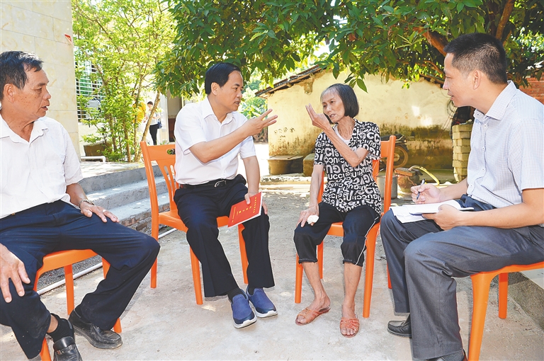 党的十九大站在中国特色社会主义进入新时代的高度,对坚决打赢脱贫攻坚战作出了总体部署。十九大闭幕后,省委先后召开省委常委会、全省领导干部大会、省委七届三次全会,传达学习会议精神,出台《中共海南省委关于认真学习宣传贯彻党的十九大精神的意见》,将“坚决打赢脱贫攻坚战”作为一项重要工作进行部署。省委书记刘赐贵和省委副书记、省长沈晓明等省领导在带头深入基层宣讲十九大精神的过程中,更是把脱贫攻坚、乡村振兴作为重中之重,走村串户、访贫问苦,强调要在精准扶贫、扶贫与扶智并重等方面下大功夫,增强紧迫感,以更大的决心和力度确保按时完成脱贫任务。