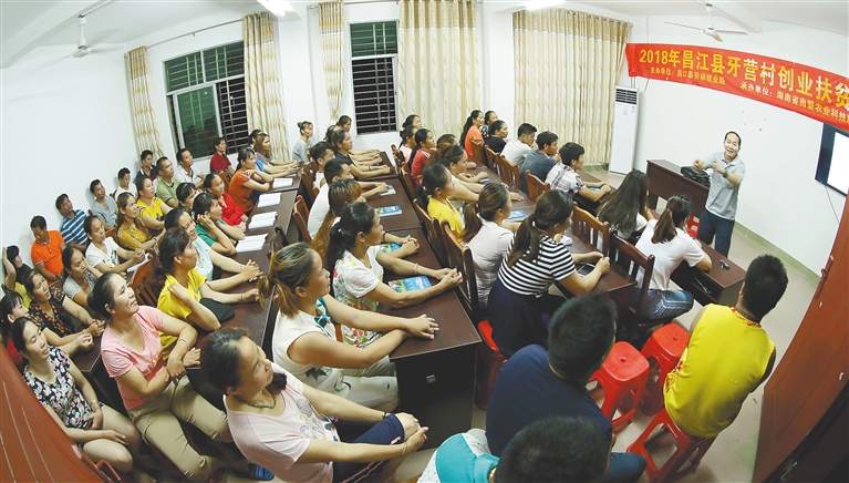 6月12日晚,一场由昌江黎族自治县劳动就业局主办的创业扶贫培训班在石碌镇牙营村党员活动室开班,海南省南繁农业科技职业培训中心讲师吴国良,用通俗易懂的语言,讲述了省内部分市县农村农户发展特色产业致富的故事,吸引了牙营村百余名青壮年劳动力以及贫困户到场听课。本报记者 曾毓慧 通讯员 杨耀科/文 苏晓杰/图