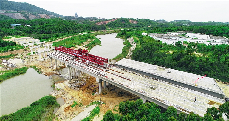今天上午,在石碌河第三大桥施工工地,只见桥墩等桥梁下部结构已全部完工。据项目施工现场负责人许平介绍,石碌河第三大桥起点位于石碌镇昌盛路,终点与建设西路相接,全长1.051公里,其中桥长356米,桥宽36.5米,为双幅桥,共有4个车道,设计时速60公里每小时,并设置非机动车道。近两个月正逢雨季,技术人员和工人们努力克服不利施工条件,加班加点推进工程建设进度。截至目前,施工方已完成主体工程总量的65%,预计今年12月竣工,并交付验收。