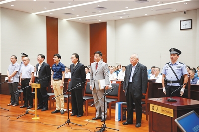坐在原审被告人席上的顾雏军,是原广东科龙电器股份有限公司、扬州科龙电器有限公司、顺德格林柯尔企业发展有限公司等企业的董事长或法定代表人。他身边坐着的还有其他6名原审被告人。