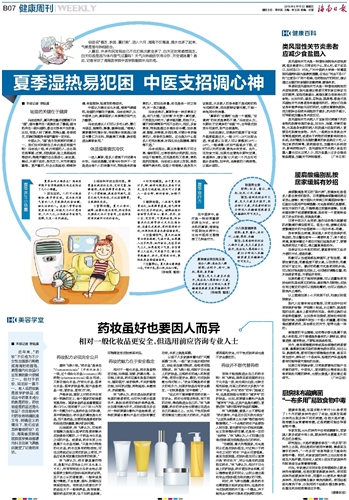 冯志成表示,夏天养生重点话题离不开“湿”,湿与暑夹在一起就形成了暑湿,湿与热夹在一起叫湿热,都会对身体产生伤害。比如,有些人到了夏季,觉得头重、容易困乏,的确可能跟身体湿气重有一定关系。