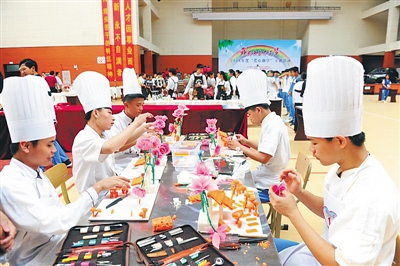 今年4月底,在澄迈县举办的“我的未来不是梦”2018年度“爱心助学”主题活动上,澄迈职校的学生在竞技场上大显身手:香醇的咖啡醉人心弦,精致的果酱绘画栩栩如生,烹饪雕刻成品惟妙惟肖……赢得了大众评审团和评委的赞誉,全校共被评选出专业知识扎实、操作技能娴熟的14名“明星学生”及10名“最具人气学生”。