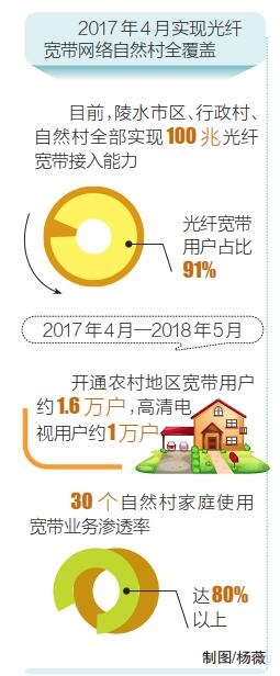 目前陵水实现了“城区光网全覆盖 农村光网村村通”的通信基础设施建设目标,全县市区、行政村、自然村全部达到100兆光纤宽带接入能力,光纤宽带用户占比91%。中国电信陵水分公司提供的数据显示,2017年4月实现光纤宽带网络自然村全覆盖至今年5月,陵水开通农村地区宽带用户约有1.6万户,高清电视用户约1万户,30个自然村家庭使用宽带业务渗透率达80%以上。