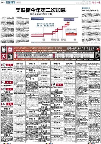 美联储今年第二次加息