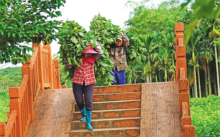 6月15日,在琼中黎族苗族自治县湾岭镇岭脚村,村民正在收桑叶。目前岭脚村总人口113户339人,有桑园面积334亩,2017年村人均可支配收入达12267元,20户贫困户通过种桑养蚕摘掉贫困帽子。 本报记者 陈元才 通讯员 朱德权 秦海灵 摄