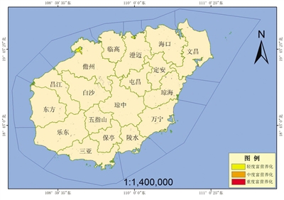 2017年海南岛近岸海域海水基本未出现富营养化,仅在澄迈马村、儋州新英湾海域出现两次轻度富营养化,面积约占全省近岸海域总面积的0.2%。
