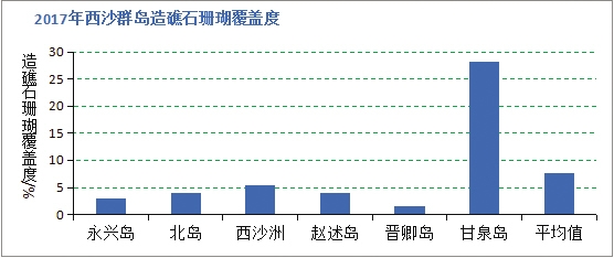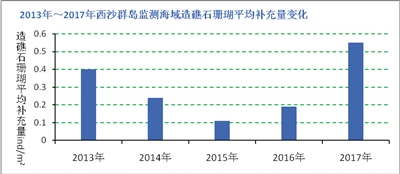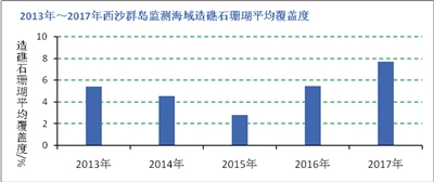 2017年西沙群岛监测海域的造礁石珊瑚平均覆盖度和平均补充量均较高。