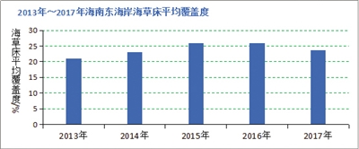 2013年~2017年海南东海岸海草床平均覆盖度趋于平稳,略有上升,其中2016年覆盖度最高为26.0%。