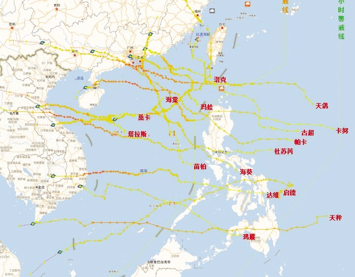 2017年,西北太平洋和南海共生成27个热带气旋,较常年(25.5个)多1.5个。有16个热带气旋进入南海或在南海生成,无登陆海南岛气旋,其中强热带风暴级别以上有9个,移动路径距离海南岛较近的有1704号“塔拉斯”、1719号“杜苏芮”、1720号 “卡奴”。